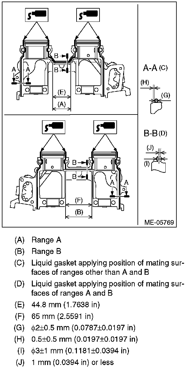 (1) Apply small amount of liquid gasket to the mating surface of front camshaft cap.