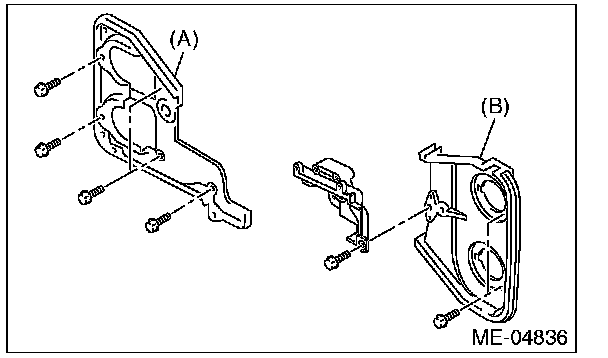 8) Remove the timing belt cover No.2 RH (A) and timing belt cover No.2 LH (B).