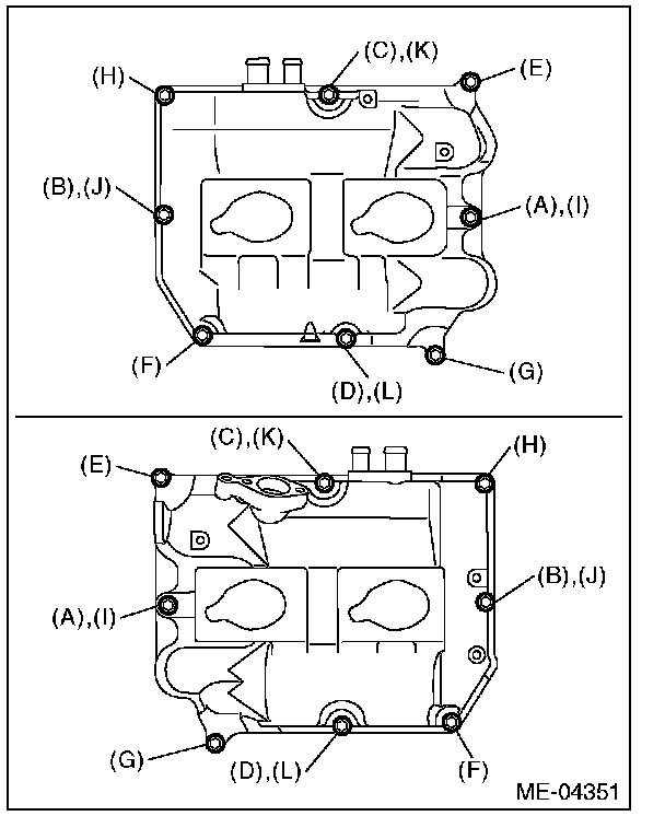 (4) Temporarily tighten the rocker cover bolts in alphabetical order shown in the figure, and then tighten to specified torque in alphabetical order.