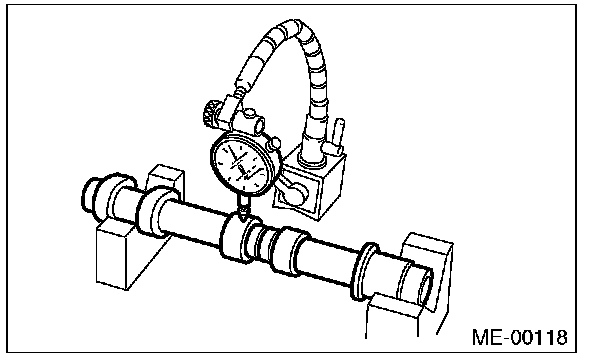 6) Measure the outside diameter of camshaft journal. If the journal diameter is not within specification, check the oil clearance.