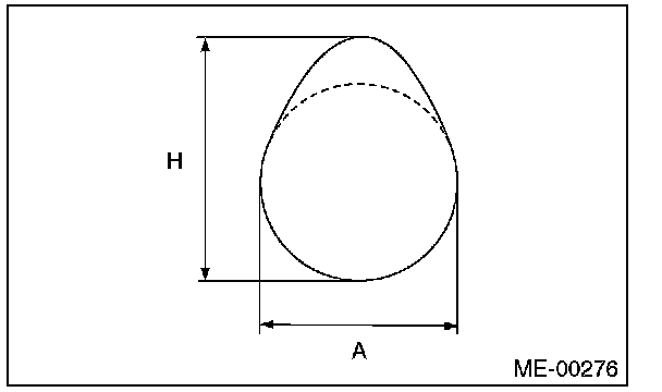 5) Measure the cam lobe height "H" and cam base circle diameter "A". If it exceeds the standard or offset wear occurs, replace it.