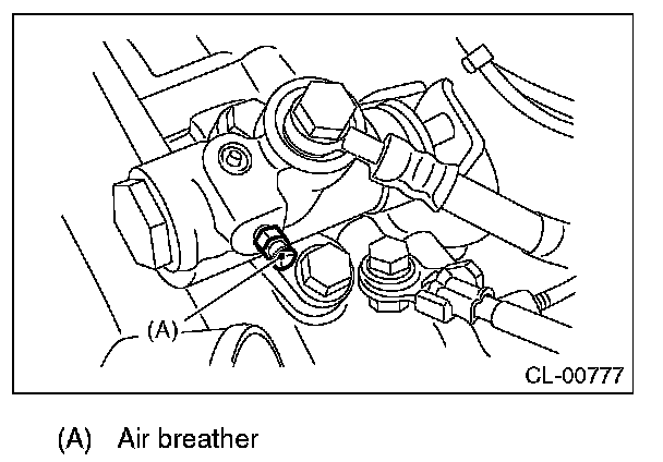 Cover the air breather with cloth to prevent clutch fluid from being splashed on surrounding parts when loosening the breather.