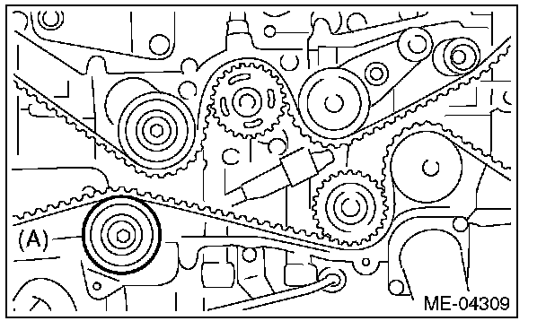 5) Remove the belt idler (A).
