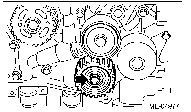 Make sure that the marks on the timing belt and sprockets are aligned.