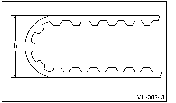 2) Check the condition on the back surface of the timing belt. If cracks are found, replace the timing belt.