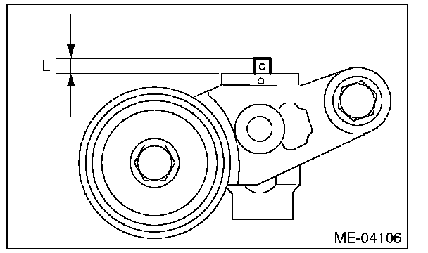 4) Measure the amount of adjuster rod protrusion "L" from the end surface of the cylinder. If it is not within specifications, replace the automatic belt tension adjuster assembly with a new part.