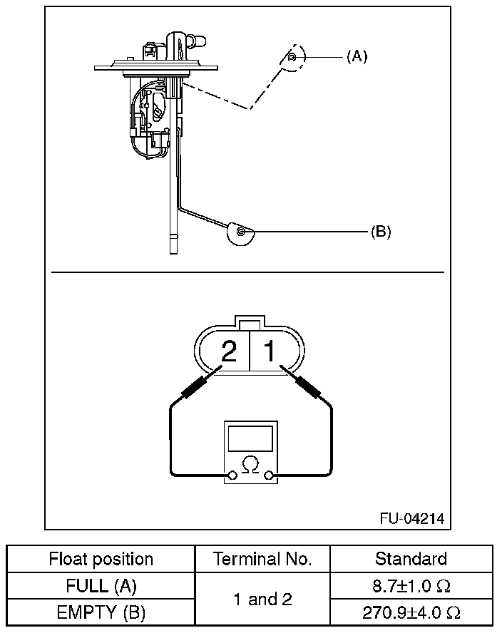Measure the resistance between fuel sub level sensor terminals.