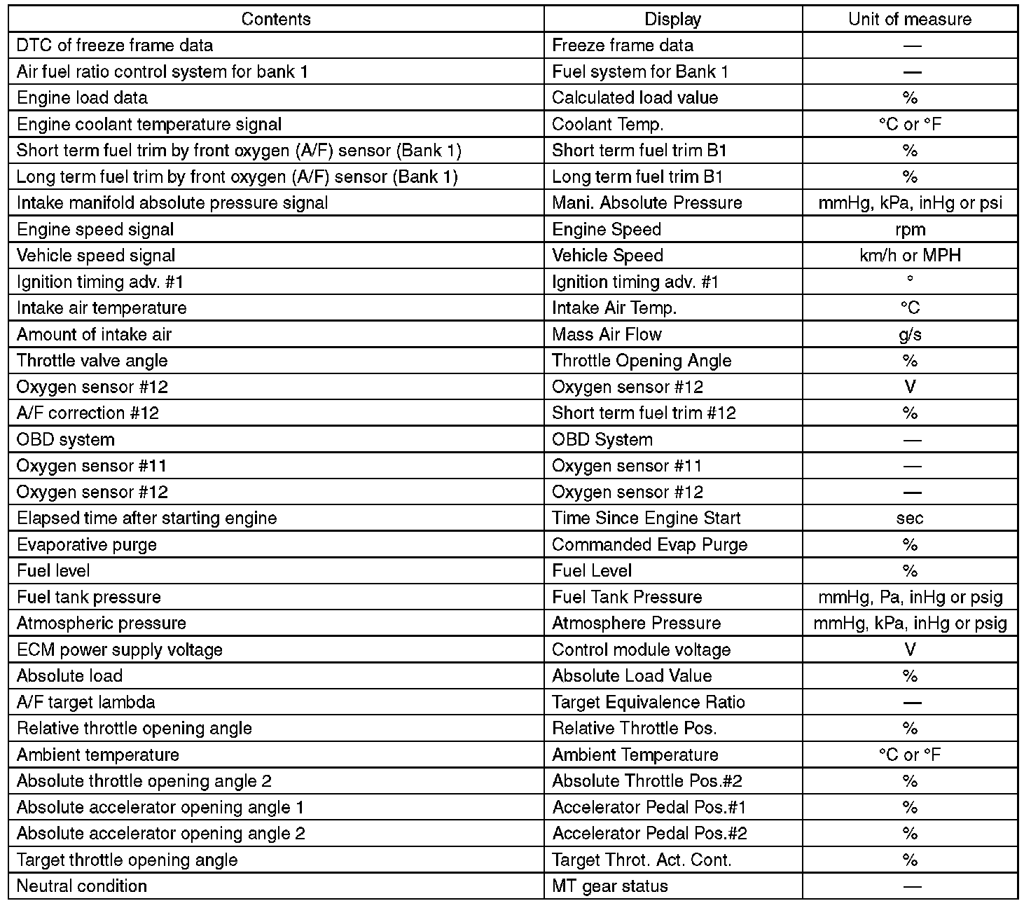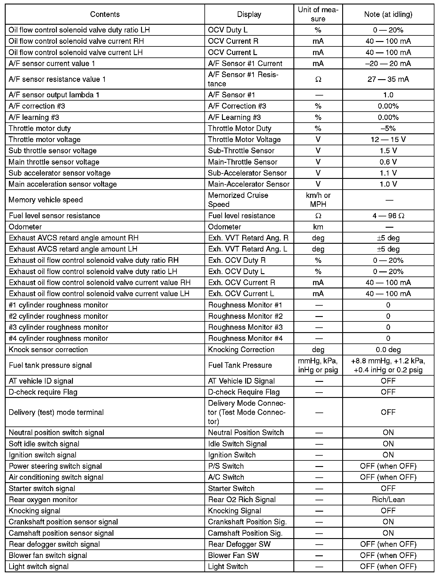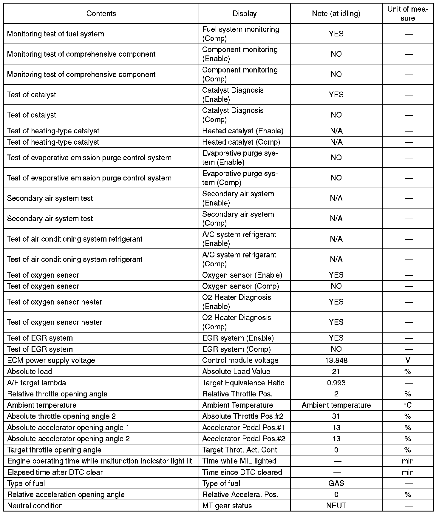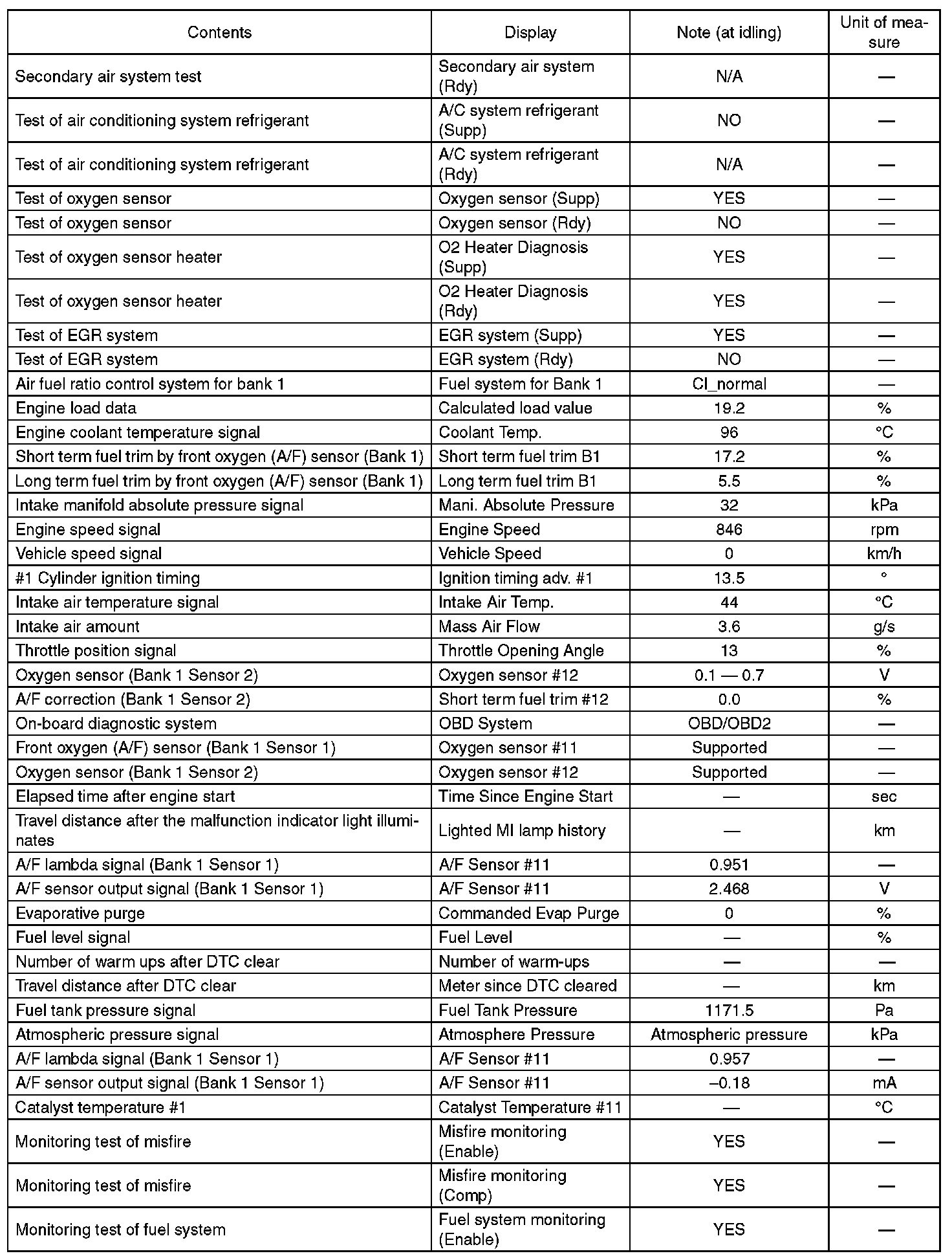 3. READ CURRENT DATA FOR ENGINE (OBD MODE)