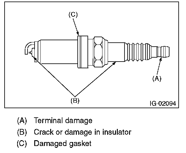 2. Check the spark plug electrode and condition of the insulator. If abnormal, check and repair the cause and replace the spark plug.