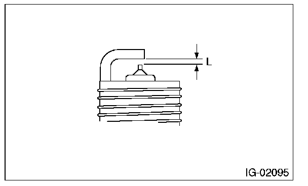 3. Using a nylon brush, etc., clean and remove the carbon or oxide deposits from the spark plug. If deposits are too stubborn, replace the spark plugs. After cleaning the spark plugs, check the spark plug gap "L" using a gap gauge. If it is not within the standard, replace the spark plug.