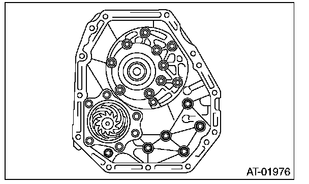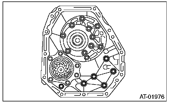 6) Remove the oil pump cover mounting bolt, and then separate the oil pump cover from the AT main case by lightly tapping with plastic hammer.