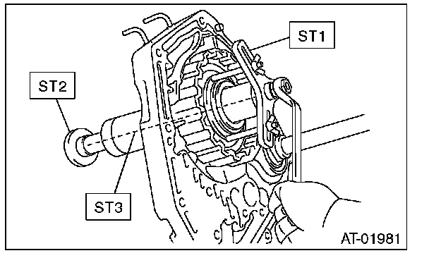 3) Using the ST1, ST2 and ST3, remove the snap ring.