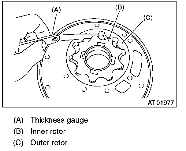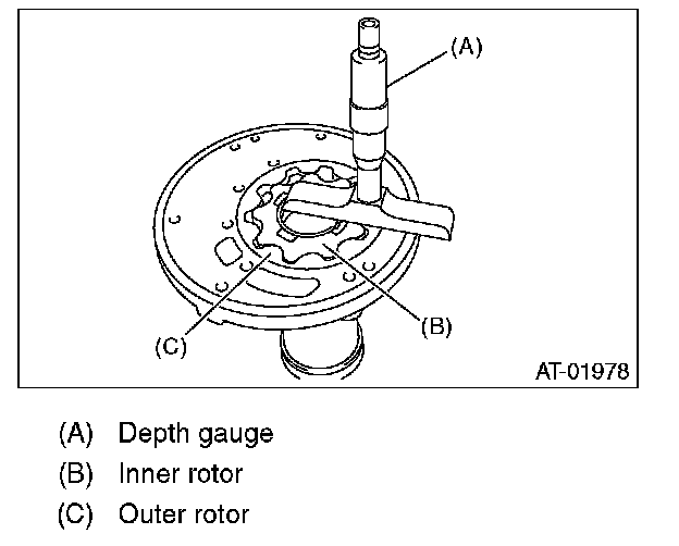 Set a depth gauge to oil pump housing, then measure the oil pump housing-to-rotor clearance.