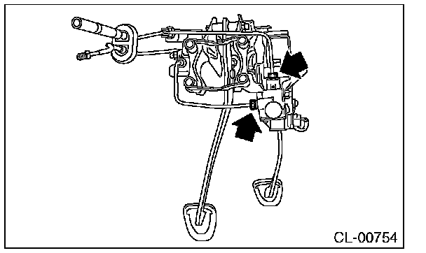 Before removing the clutch pedal mounting bolt, remove the hook of the assist spring from the pedal bracket. (turbo model)