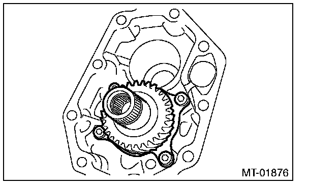 1) Install the needle bearing and snap ring to the transfer drive gear.