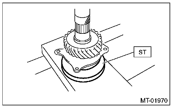 2) Set the ST to the bearing inner race, then install the transfer drive shaft.