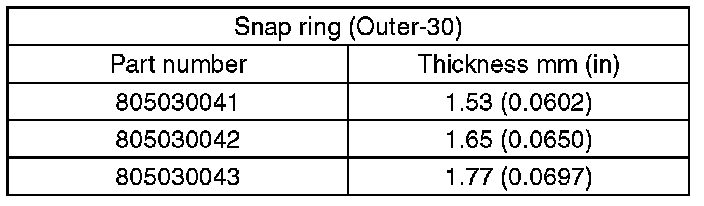If the measurement is not within specification, select a suitable snap ring and replace it.