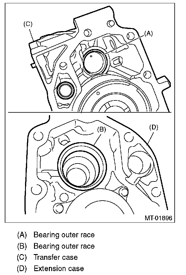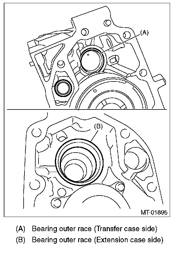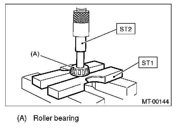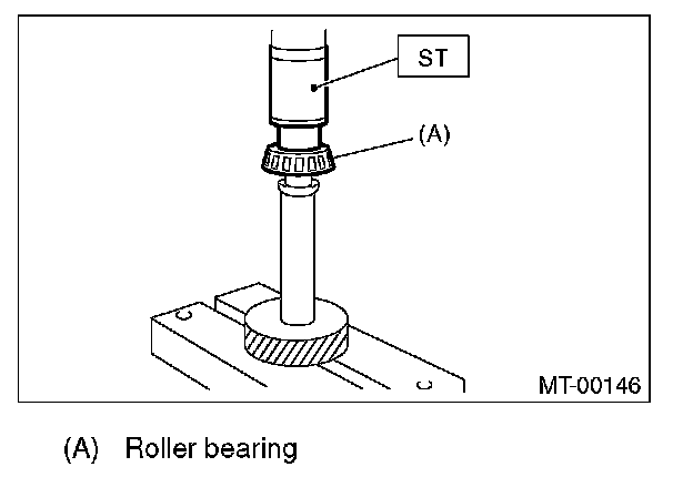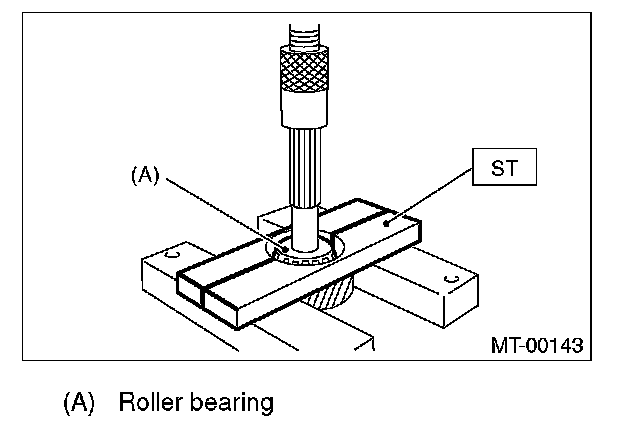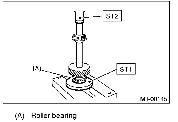 2) Using ST1 and ST2, remove the roller bearing (transfer case side).
