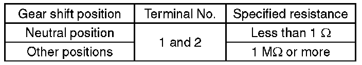 3) Measure the resistance between neutral position switch terminals.