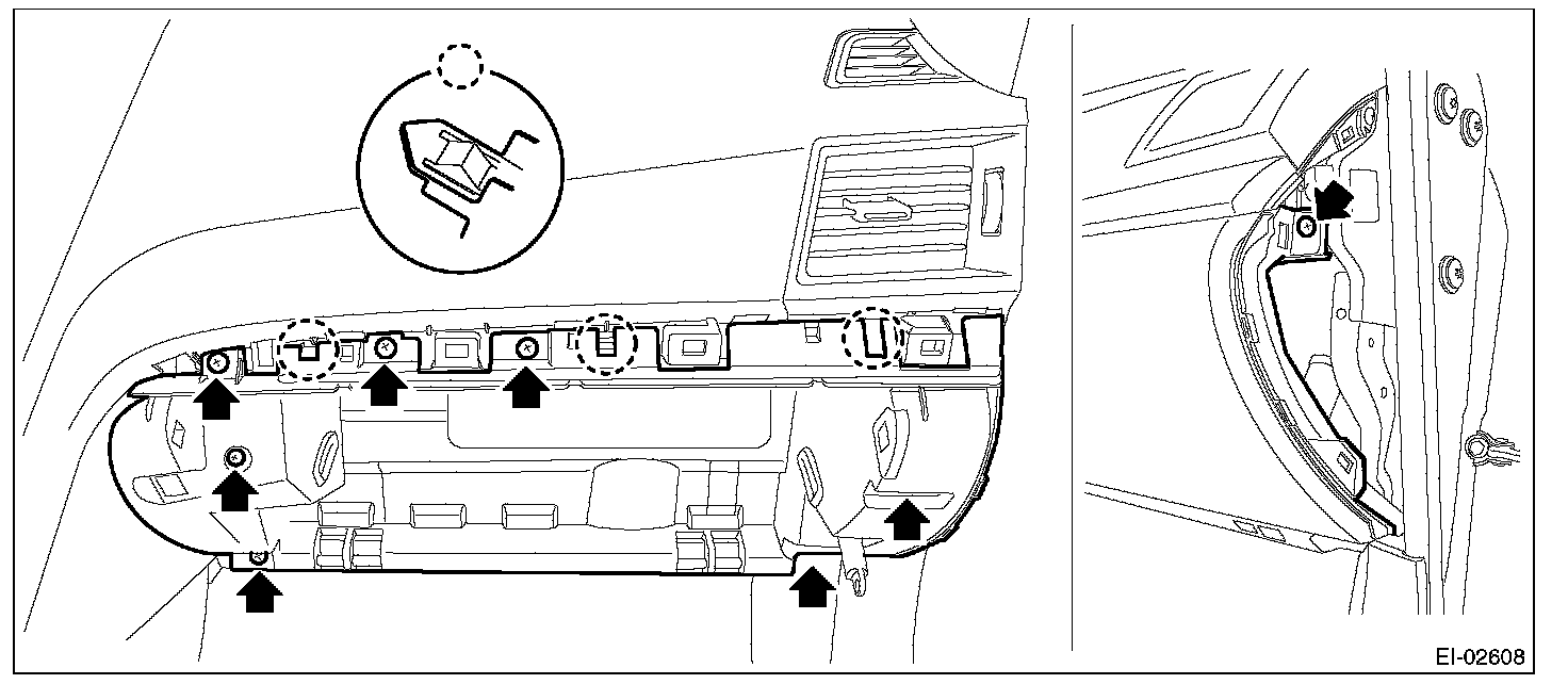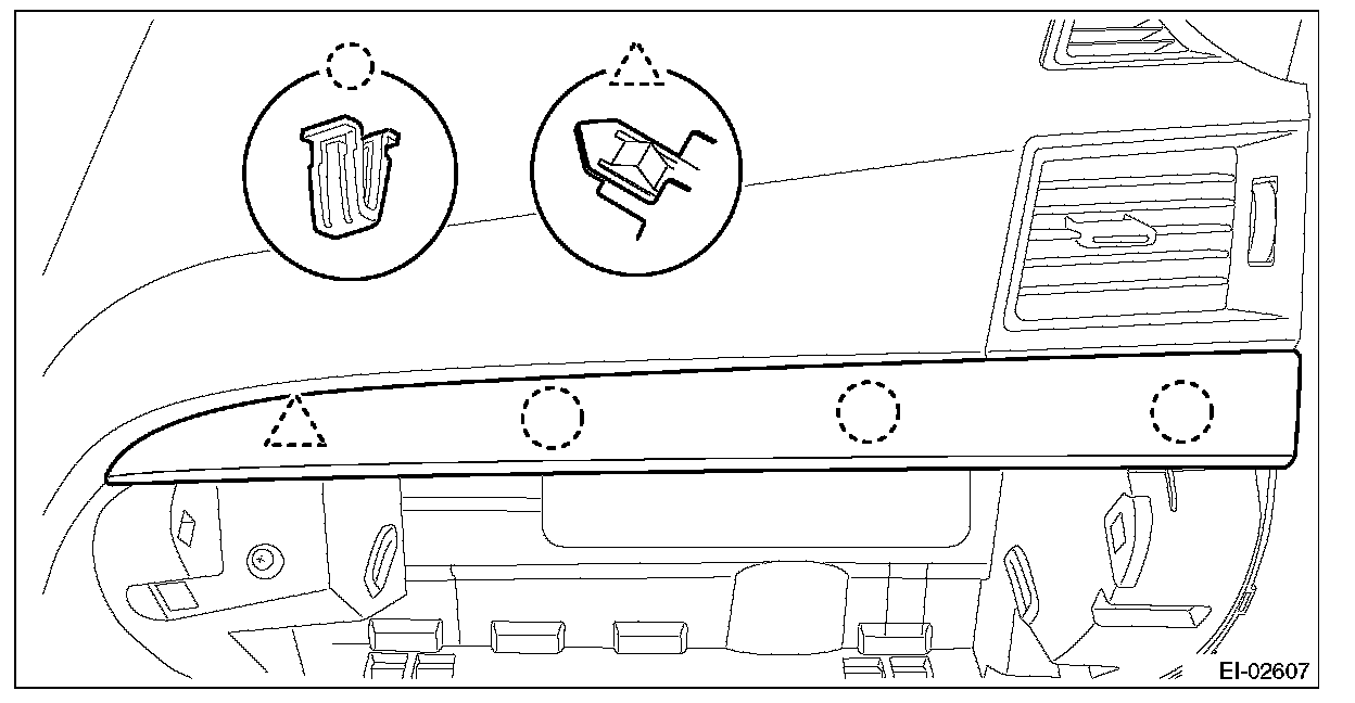 2. Release the clips, and remove the instrument panel side cover RH.