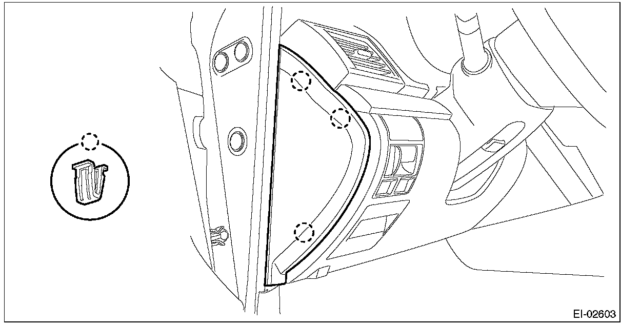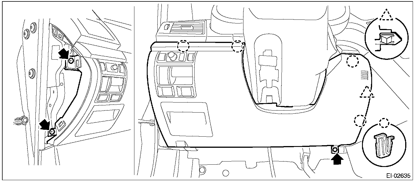 (2) Remove the clips, and remove the instrument panel side cover LH.