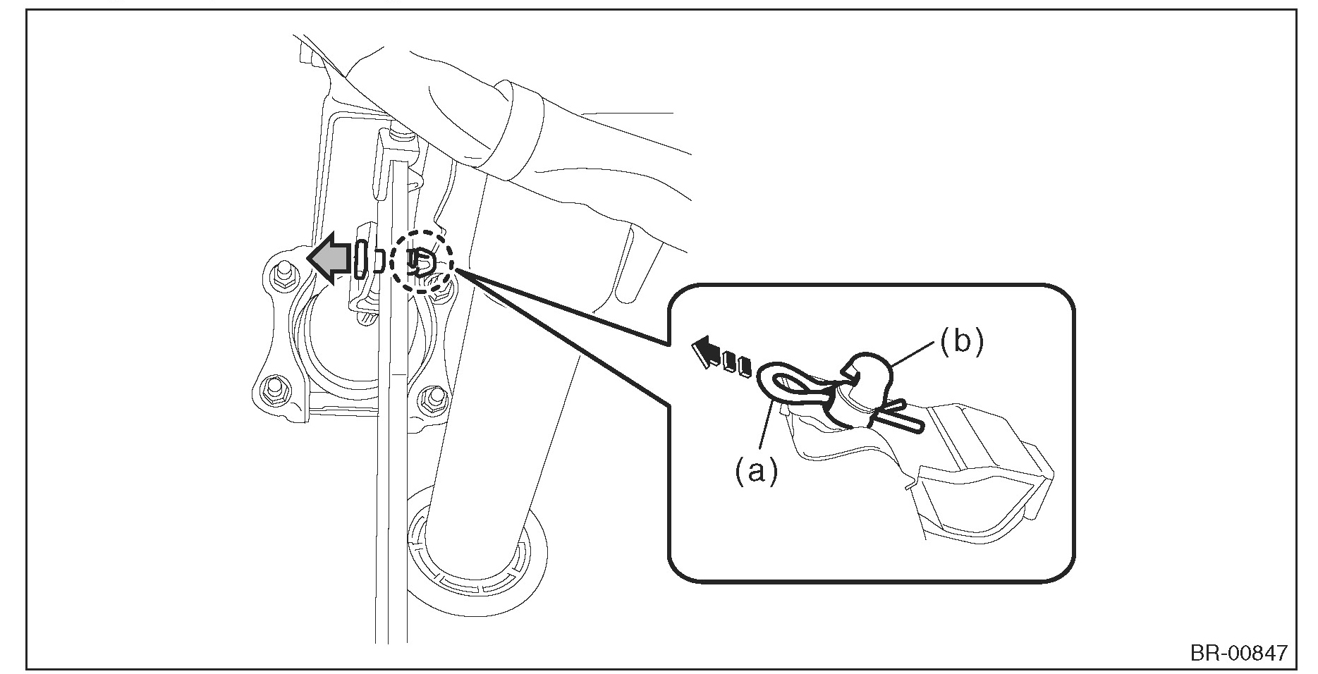 (6) Remove the snap pin (a) and clevis pin (b), and remove the operating rod from the brake pedal.
