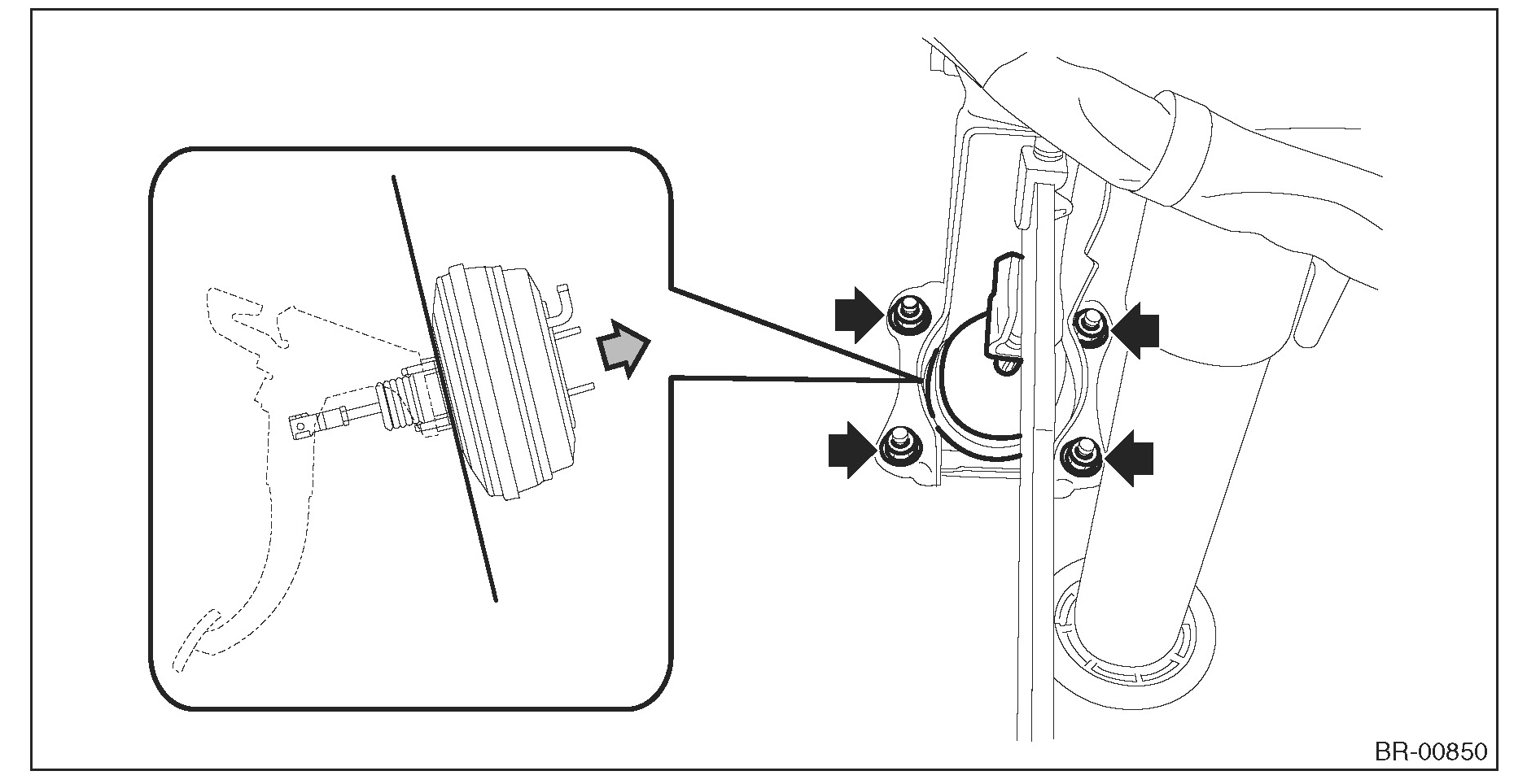^ Be careful not to drop the brake booster. If the brake booster is dropped accidentally, replace it.