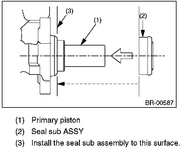 ^ When installing the master cylinder assembly, replace the seal sub assembly with a new part, and install it to the brake booster.