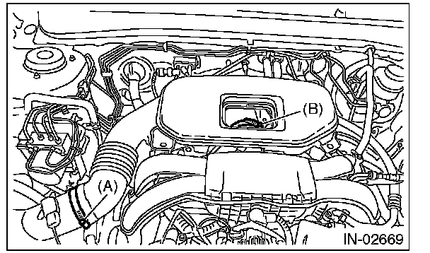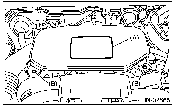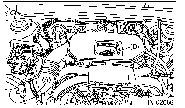3) Remove the cover (A) and clip (B) from air intake boot assembly. (non-turbo model)