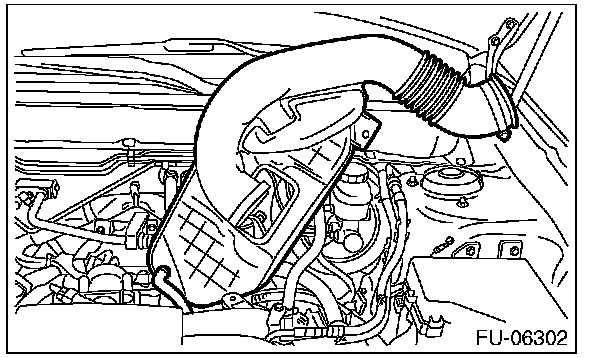 6) Remove the air intake boot from the throttle body, and move it to the left side wheel apron. (non-turbo model)