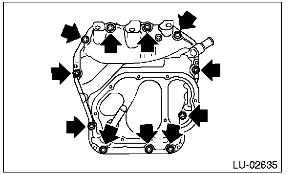1) Apply liquid gasket to the mating surfaces of oil pan, and install the oil pan.