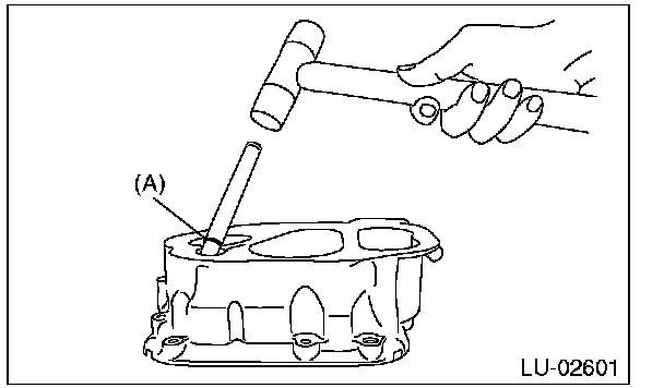 (2) Insert the oil drain pipe up to the reference line (A) using a plastic hammer.