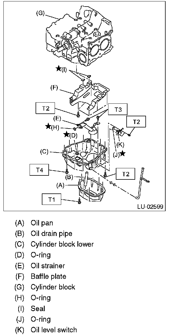 Check that the oil pan, oil strainer and baffle plate do not have deformation, cracks or damage.