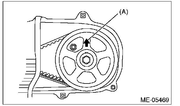 When the arrow mark (A) on cam sprocket LH is at the top position, the #1 cylinder piston is at top dead center of the compression stroke.