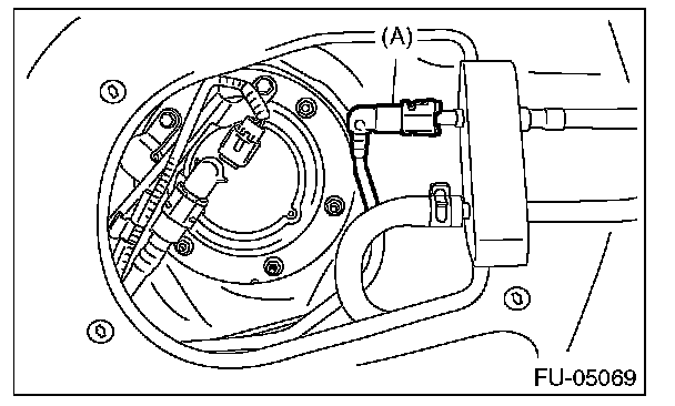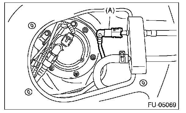 1. Disconnect the fuel cord connector (A), and remove the clip (B).