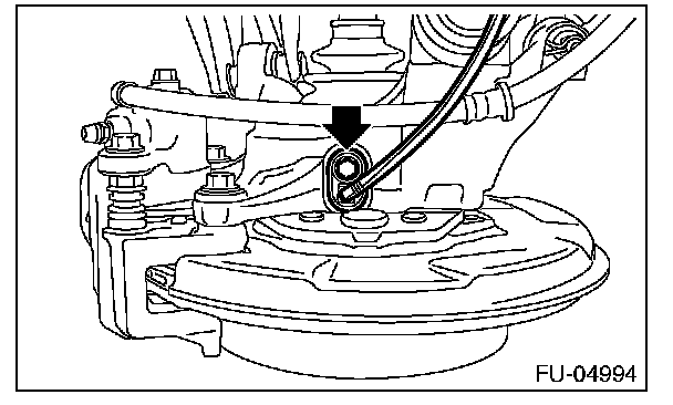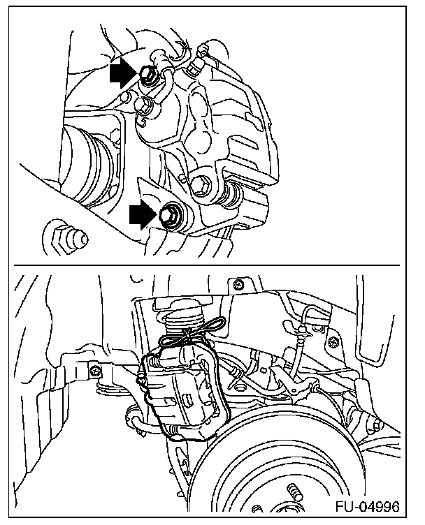 14. Remove the rear disc brake assembly and tie it to the body side of the vehicle.