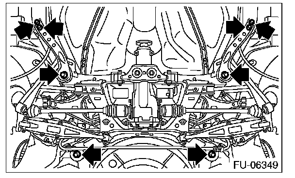 3. Remove the bolts which secure the rear suspension assembly to the body.