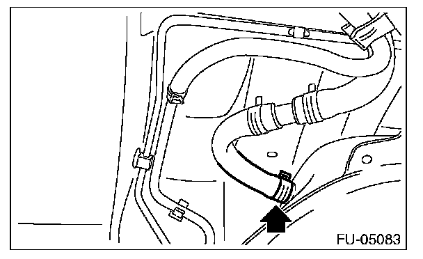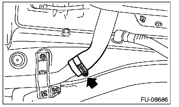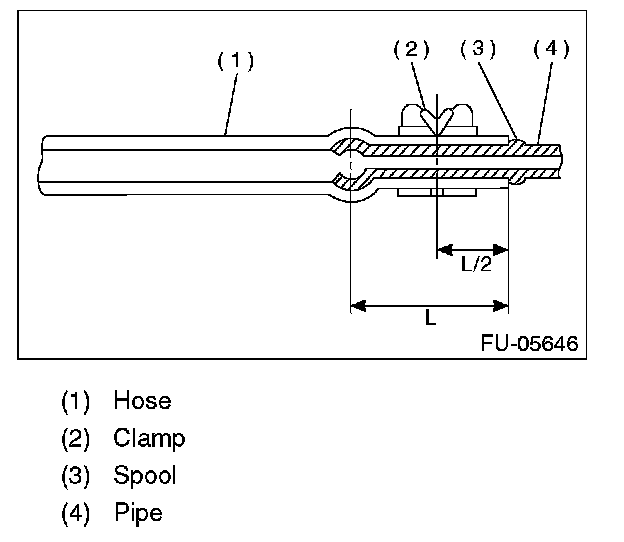 2. Correctly insert the fuel filler hose to the spool, and then install the clamp as shown.