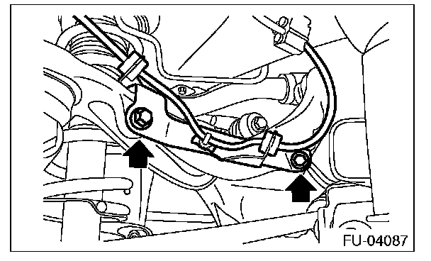 12. Remove the rear ABS wheel speed sensor harness bracket from the upper arm.