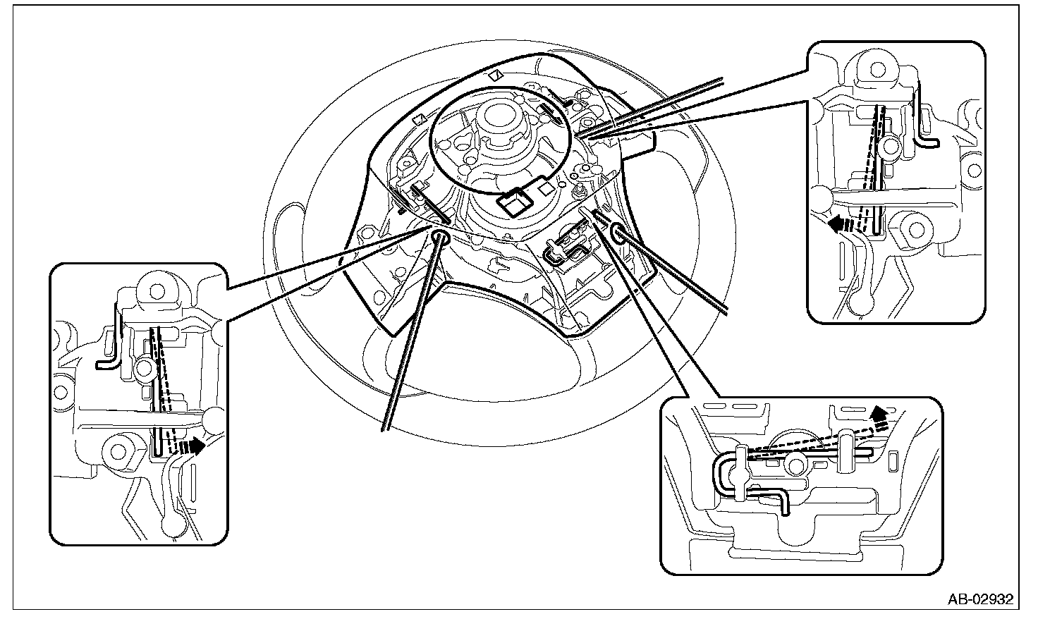 ^ Always use the steering wheel puller for removal to avoid deforming the steering wheel.