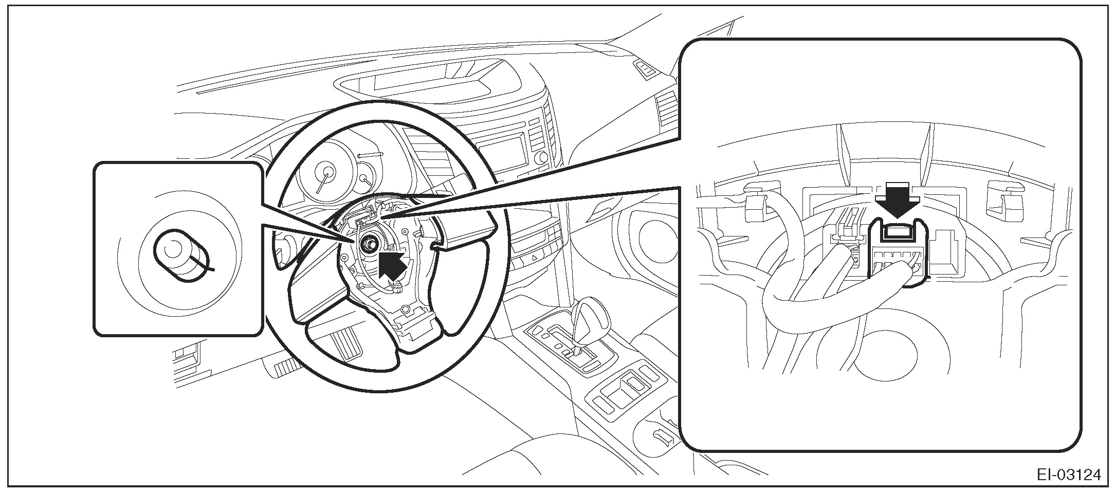 ^ If the steering wheel has been removed, make sure that the roll connector is not turned from the original position.