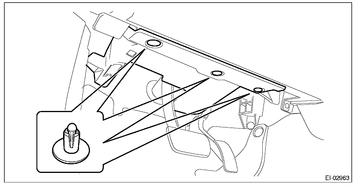 (2) Remove the clips and data link connector, and remove the instrument panel lower cover under.