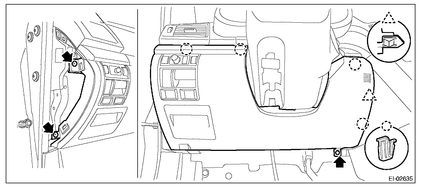 (1) Remove the clips, and remove the instrument panel side cover LH.