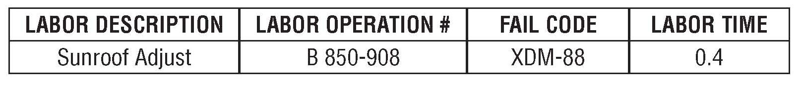 If you encounter a customer complaint when opening the sunroof (the glass opens about one inch then stops, makes a squeak type sound and/or opens halfway then binds), the wedge cap may be out of alignment. If the wedge cap is too high on one side, it will cause the sunroof glass to bind, which will cock the glass. Refer to the service procedure to remedy the