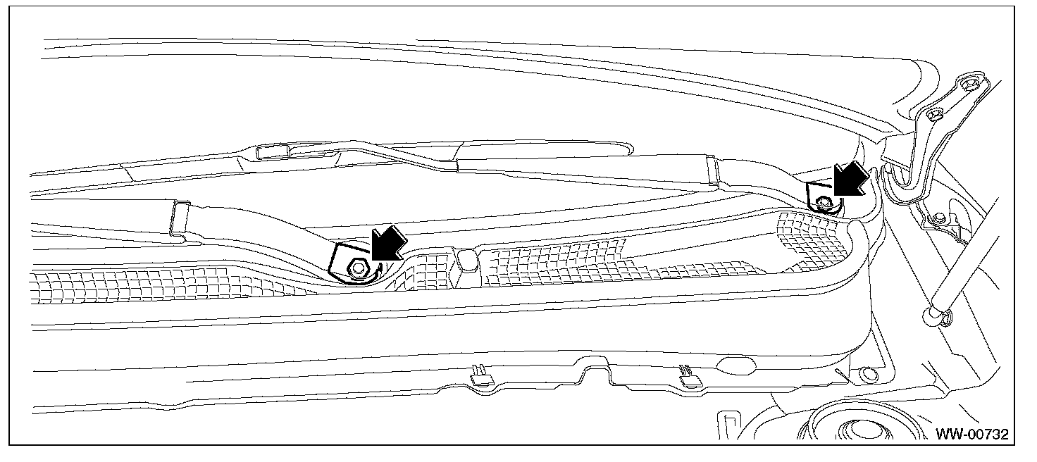2. Remove the nuts, and remove the front wiper arm assembly.