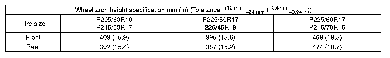 Other than OUTBACK model: 0±3 mm (0±0.12 in)