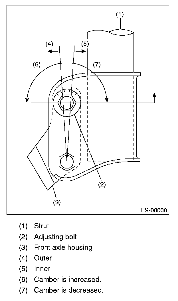 3) Turn the camber adjusting bolt so that the camber is set at specification.