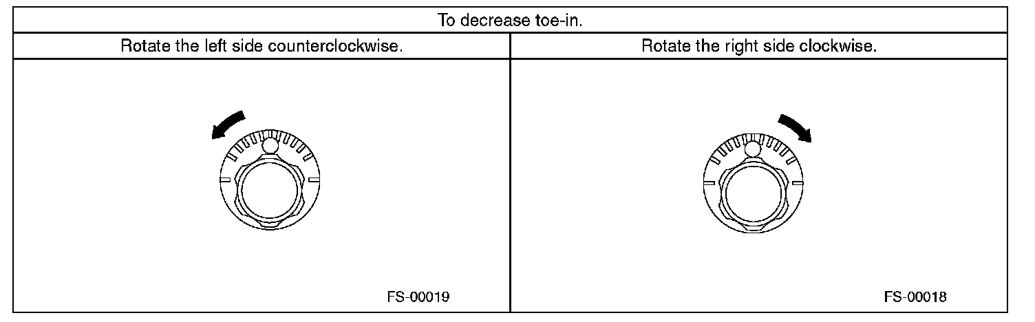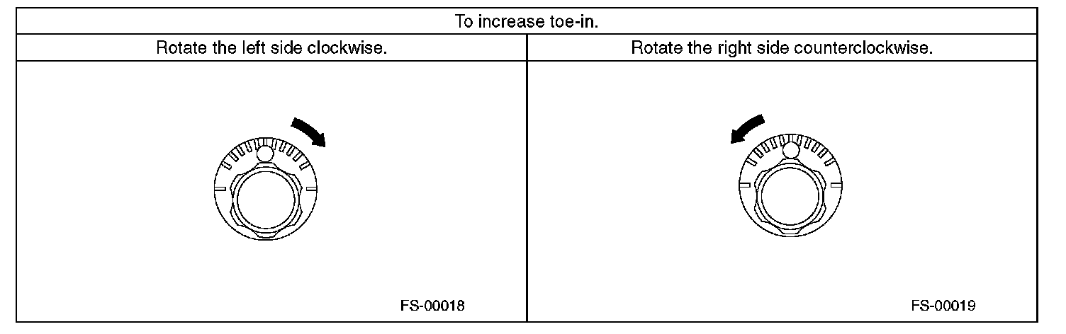 2) When one rear wheel is adjusted in a toe-in direction, adjust the other rear wheel equally in toe-out direction, in order to make the thrust angle adjustment.
