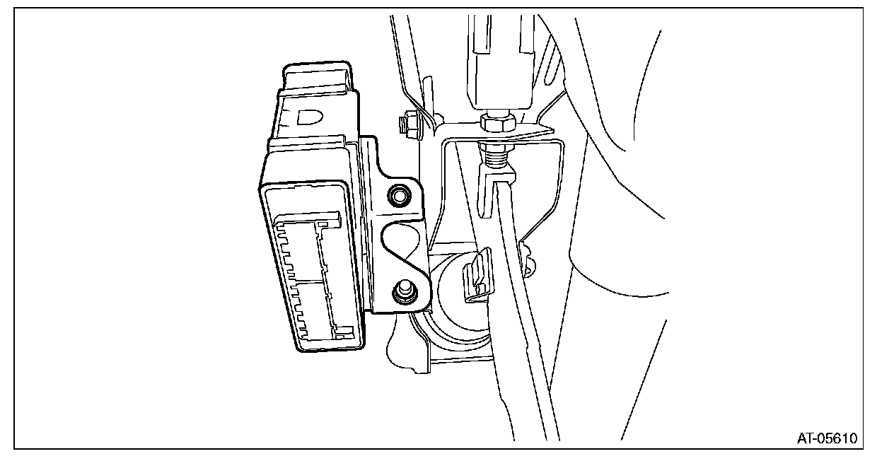 To avoid the damage to bracket and TCM, do not remove after installing TCM to bracket. If installed by mistake, the part must be replaced with a new part.