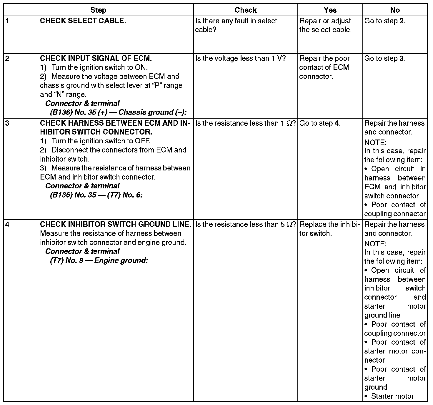 DTC P0852 PARK/NEUTRAL SWITCH INPUT CIRCUIT HIGH (AT MODEL)DTC DETECTING CONDITION:
